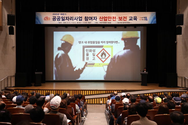 구로구(구청장 장인홍)는 8월 5일부터 6일까지 이틀간 구로구민회관 대강당에서 공공일자리사업 참여자 372명을 대상으로 산업안전 및 보건교육을 진행한다고 밝혔다. 이번 교육은 참여자의 현장 안전사고 예방과 건강관리 능력 향상을 목표로 마련됐다.