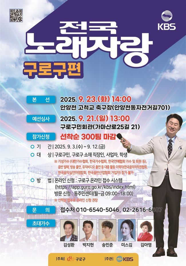 ‘전국노래자랑’은 세대를 아우르며 국민적 사랑을 받아온 대표적인 참여형 음악 프로그램이다. 구로구는 이번 무대를 통해 구민들이 자신의 끼와 재능을 마음껏 발휘할 수 있는 기회를 제공하고, 지역 사회가 함께 어울리는 화합의 장을 만들 계획이다.