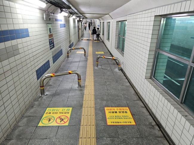 구로구가 신도림 지하보도의 보행자 안전을 확보하기 위해 오토바이와 자전거의 무단 주행을 막는 안전시설물을 설치하고 시범 운영에 들어갔다.