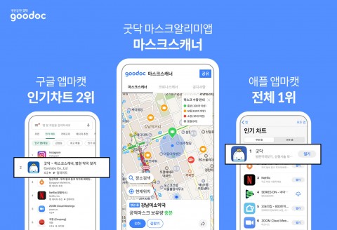 케어랩스 굿닥 마스크알리미앱, 정식 서비스 출시 전부터 앱스토어 1위·안드로이드 2위 기록… 일일 트래픽 100만건 돌파