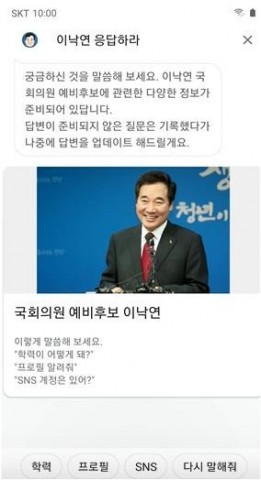 이용 방법은 간단하다. 스마트폰에 대고 “오케이 구글~ 이낙연 응답하라” 또는 휴대폰 홈 버튼을 길게 누르고(롱 프레스) “이낙연 응답하라”라고 말하면 서비스가 호출된다. “후보 공약”, “주요 경력”, “청년 정책” 등 궁금한 것을 물어보면 후보가 자신의 목소리로 무엇이든 대답해준다.