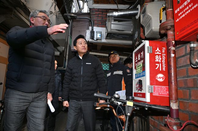 오세훈 서울시장이 한파가 찾아온 18일(수) 돈의동 쪽방촌(종로구 돈의동)을 찾아 화재 안전 시설을 점검하고 있다.