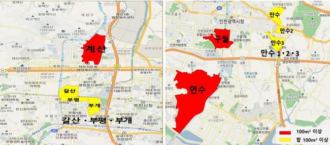 인천계산,인천부평일대(왼쪽) 인천연수, 인천구월, 인천만수일대(오른쪽)