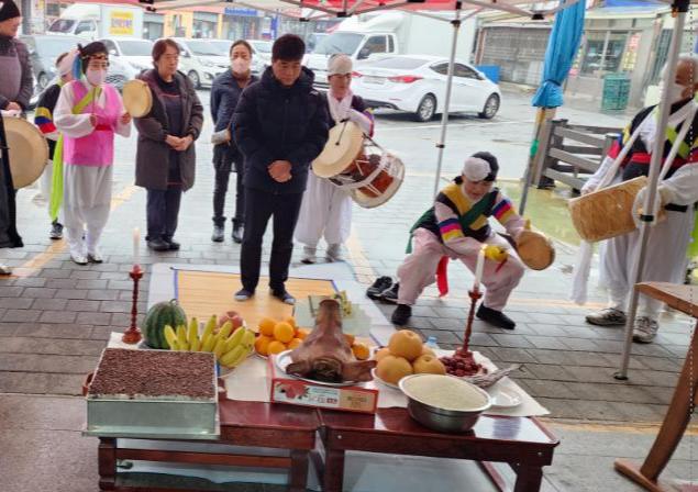 정월대보름 풍물 놀이와 함께 천지신명께 정성을 올리는 오천시장 김정하 상인회장