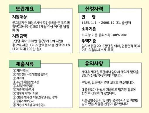 의정부시, 무주택 청년 전 · 월세 보증금 대출이자 최대 연 200만 원 지원